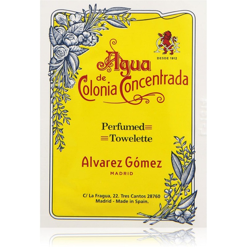Individual wipes are moistened and impregnated with the fresh aroma of Alvarez Gomez Eau de Cologne Concentrate and packed in individual sachets that guarantee freshness and quality.