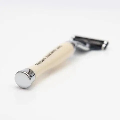 Step into the elegance of a bygone era with the Captain Fawcett Hand-Crafted Safety Razor – a modern revival of a true Edwardian classic. Beautifully engineered with an imitation ivory handle and finished with a polished chrome collar and base, this razor embodies timeless craftsmanship with contemporary performance.
