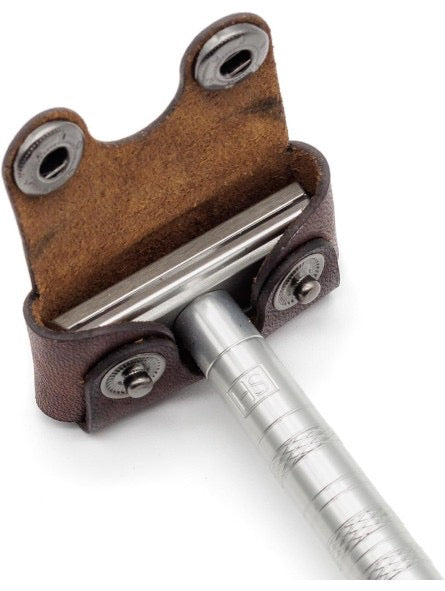 Protect your Henson razor with the Henson Shaving Razor Head Cover. Made from genuine black leather and made in Canada, this premium cover is designed for a perfect, secure fit and shields your razor from scratches, dust, and general wear.
