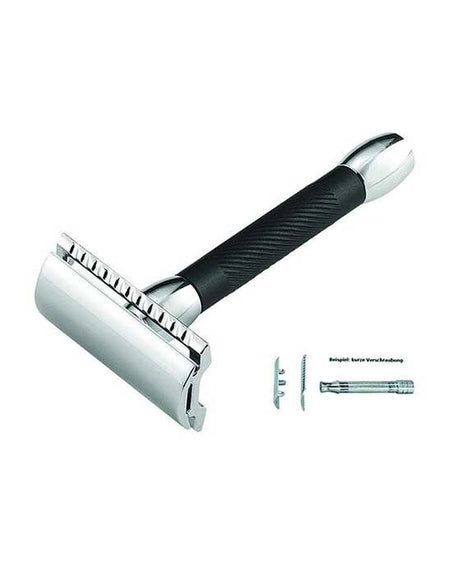 Merkur 30C Double Edge Safety Razor Straight Cut, Chrome Black Handle