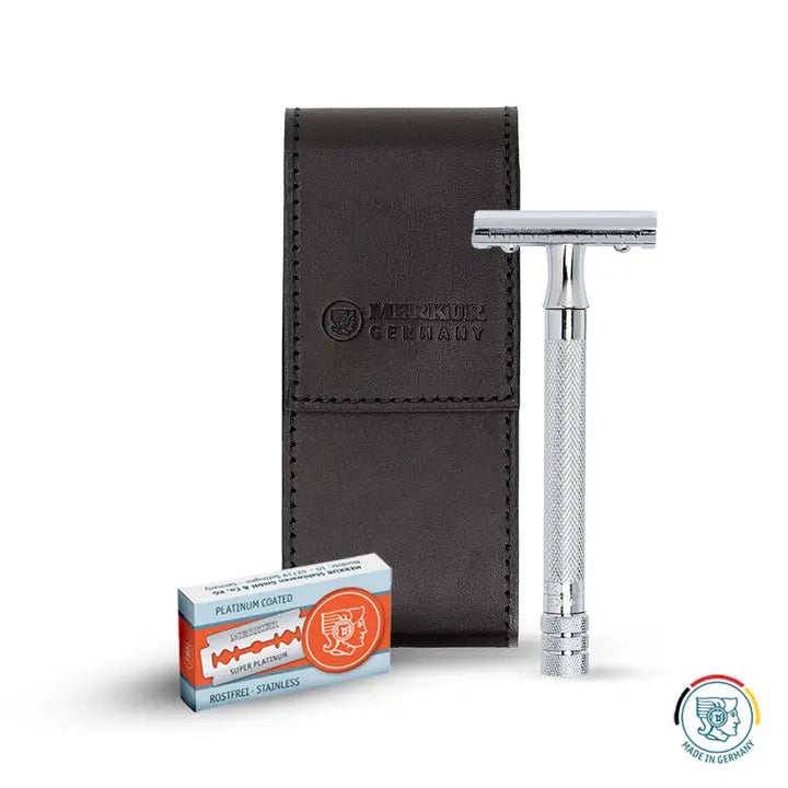 - Complete Shaving Set: Includes the precision-engineered Merkur 23001 safety razor and 10 stainless steel blades for superior shaving performance across multiple sessions.